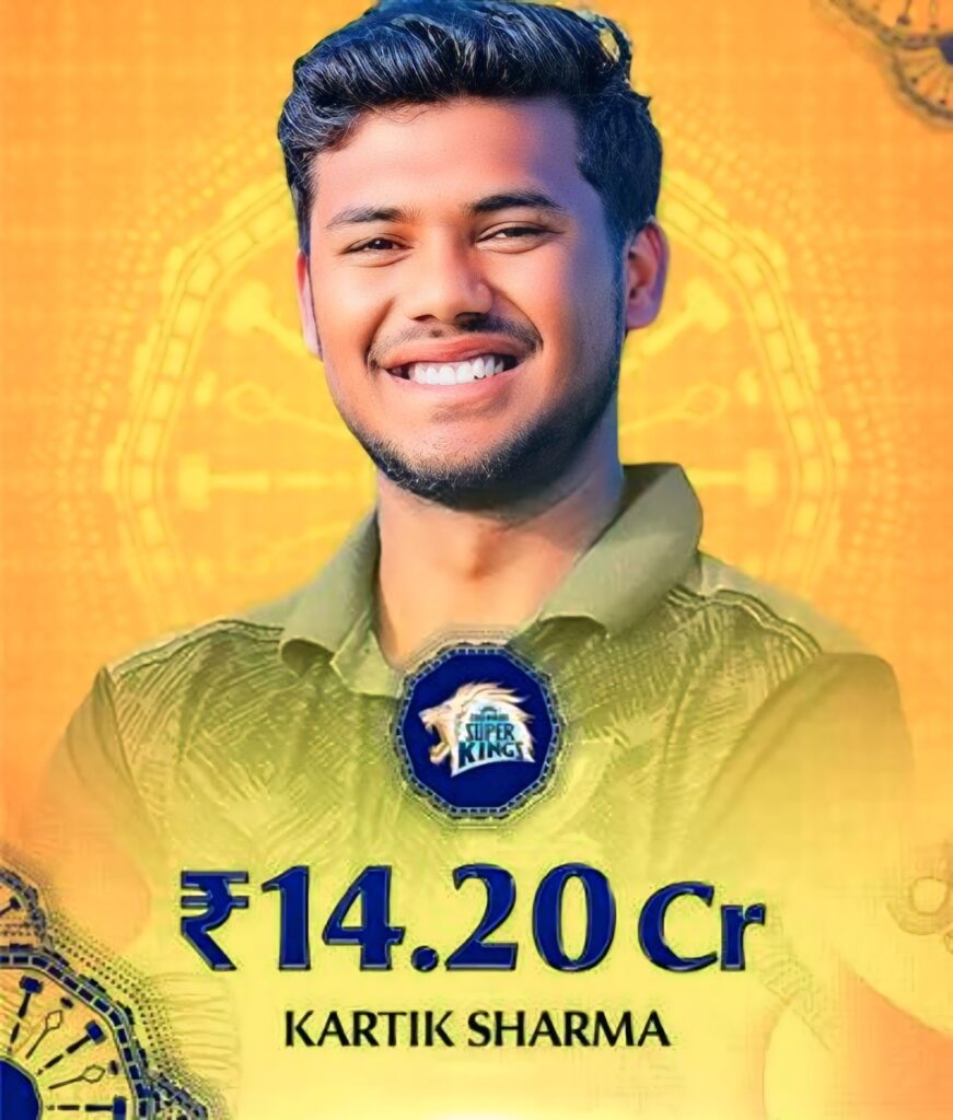 चेन्नई सुपर किंग्स(CSK) ने Kartik Sharma को IPL 2026 के मेगा ऑक्शन में ₹14.20 करोड़ में खरीदा। यह IPL इतिहास में किसी भी अनकैप्ड खिलाड़ी के लिए लगाई गई सबसे बड़ी बोली में से एक है, जहां वह प्रशांत वीर के साथ संयुक्त रूप से सबसे महंगे uncapped players में शामिल है।